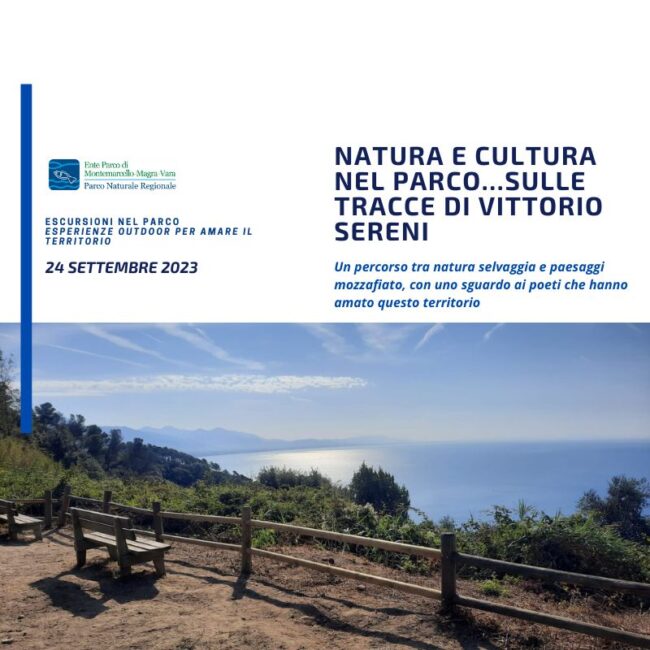 NATURA E CULTURA NEL PARCO…SULLE TRACCE DI VITTORIO SERENI Eventi ed IniziativeBy Parco Montemarcello Magra18 Settembre 2023DOMENICA 24 SETTEMBRE 2023