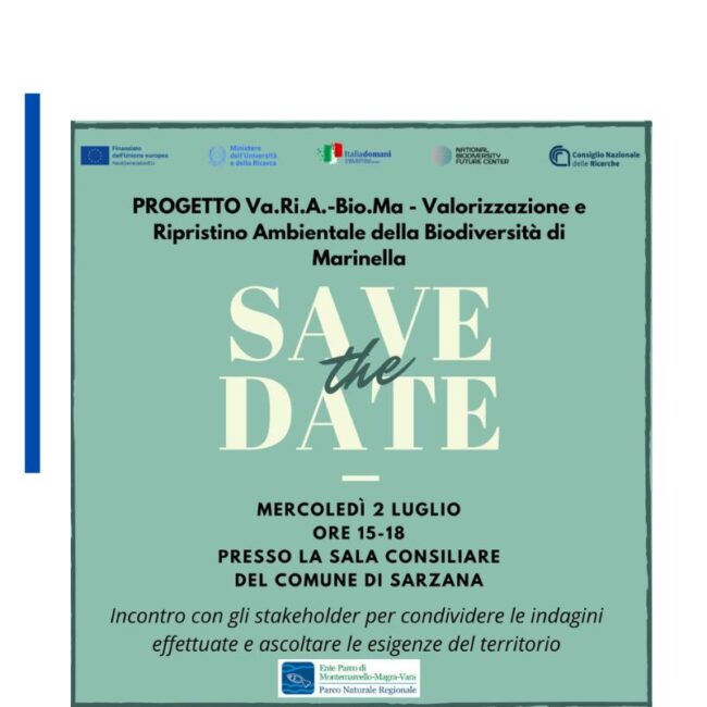 Progetto Va.Ri.A.-Bio.Ma. – “Valorizzazione e Ripristino Ambientale della Biodiversità di Marinella Non perdete questa data! Mercoledì 2 luglio 2025, nell’ambito del progetto Va.Ri.A.-Bio.Ma. – “Valorizzazione e Ripristino Ambientale della Biodiversità di Marinella” finanziato nell’ambito del programma di ricerca del Centro Nazionale della Biodiversità “National Biodiversity Future Center (NBFC)” a valere sulle risorse del Piano Nazionale Ripresa…