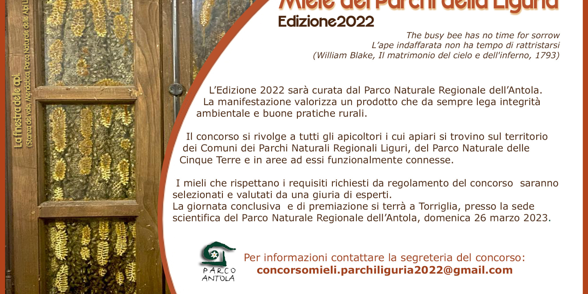 Il concorso è rivolto a tutti gli apicoltori con apiari nei Comuni delle aree protette regionali, del Parco Nazionale delle Cinque Terre ed in aree ad essi funzionalmente connessi.