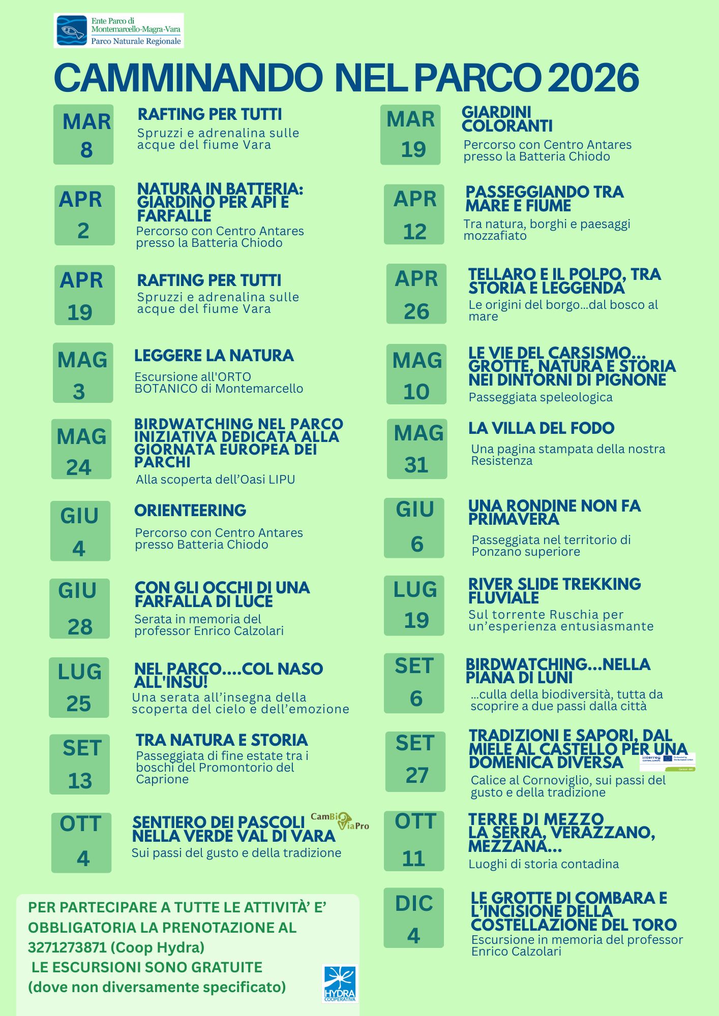 Le escursioni saranno a numero chiuso, con prenotazione obbligatoria a: cea@parcomagra.it –